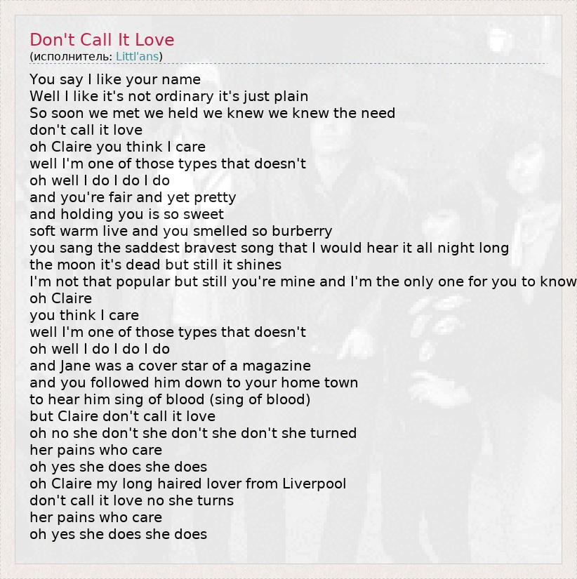 А как ты думаешь, о чем песня "Don't Call It Love" ?