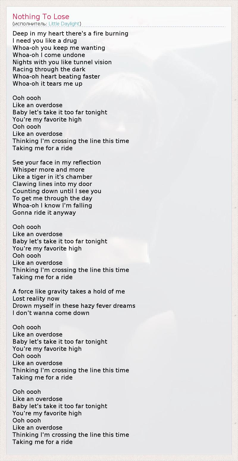 А как ты думаешь, о чем песня "Nothing To Lose" ?