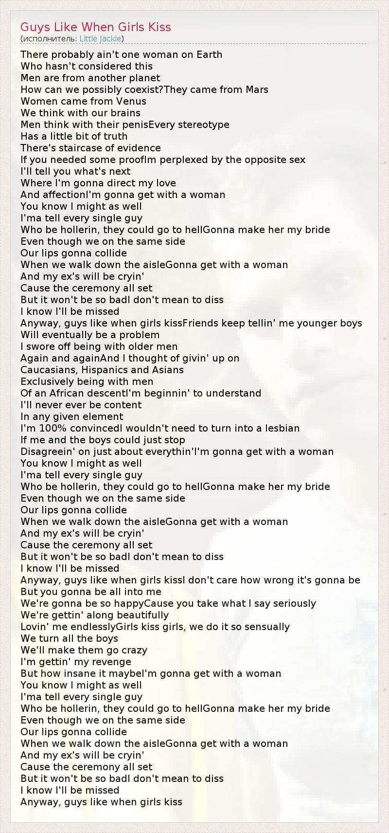 А как ты думаешь, о чем песня "Guys Like When Girls Kiss" ?