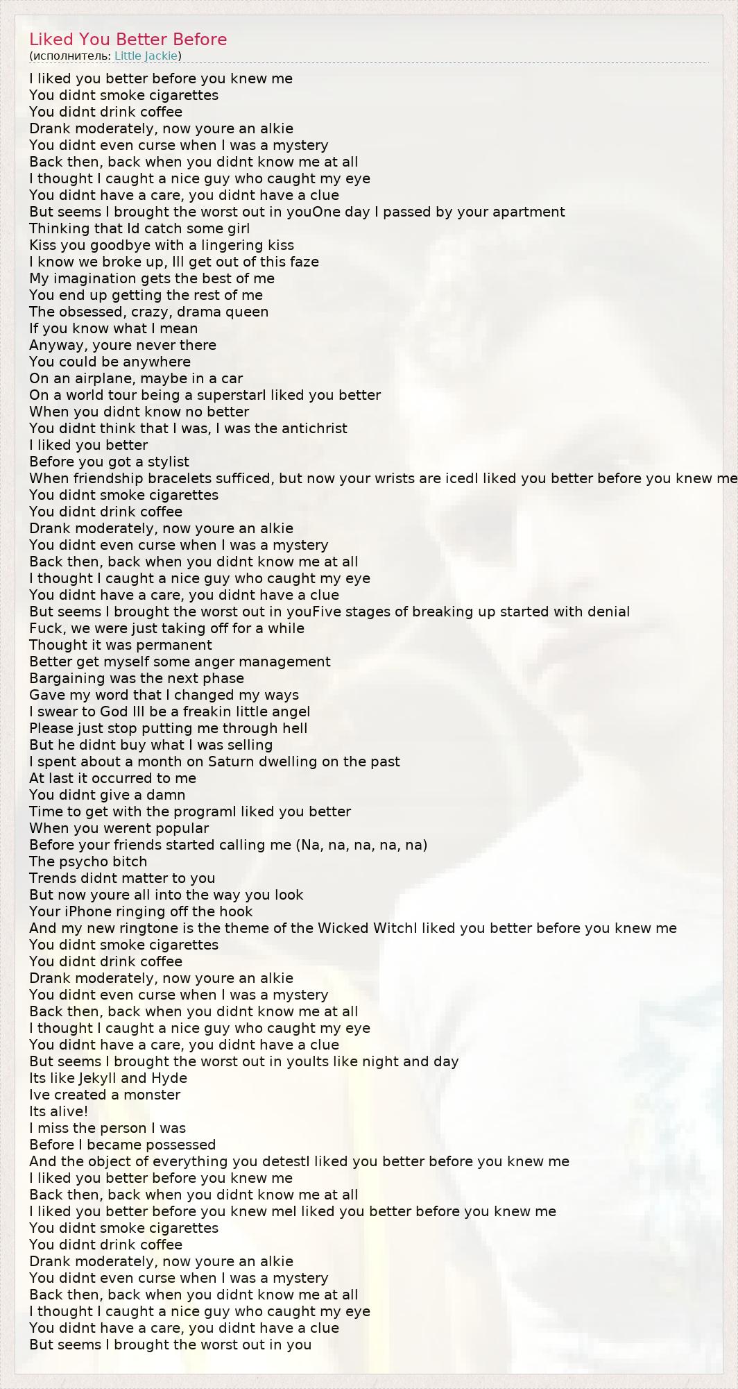 А как ты думаешь, о чем песня "Liked You Better Before" ?
