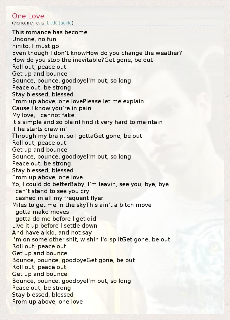 А как ты думаешь, о чем песня "One Love" ?