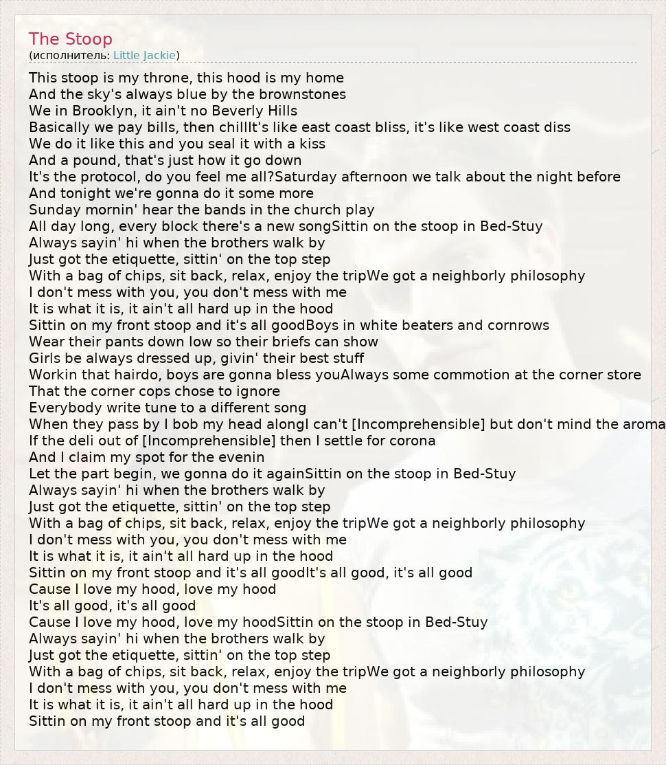А как ты думаешь, о чем песня "The Stoop" ?