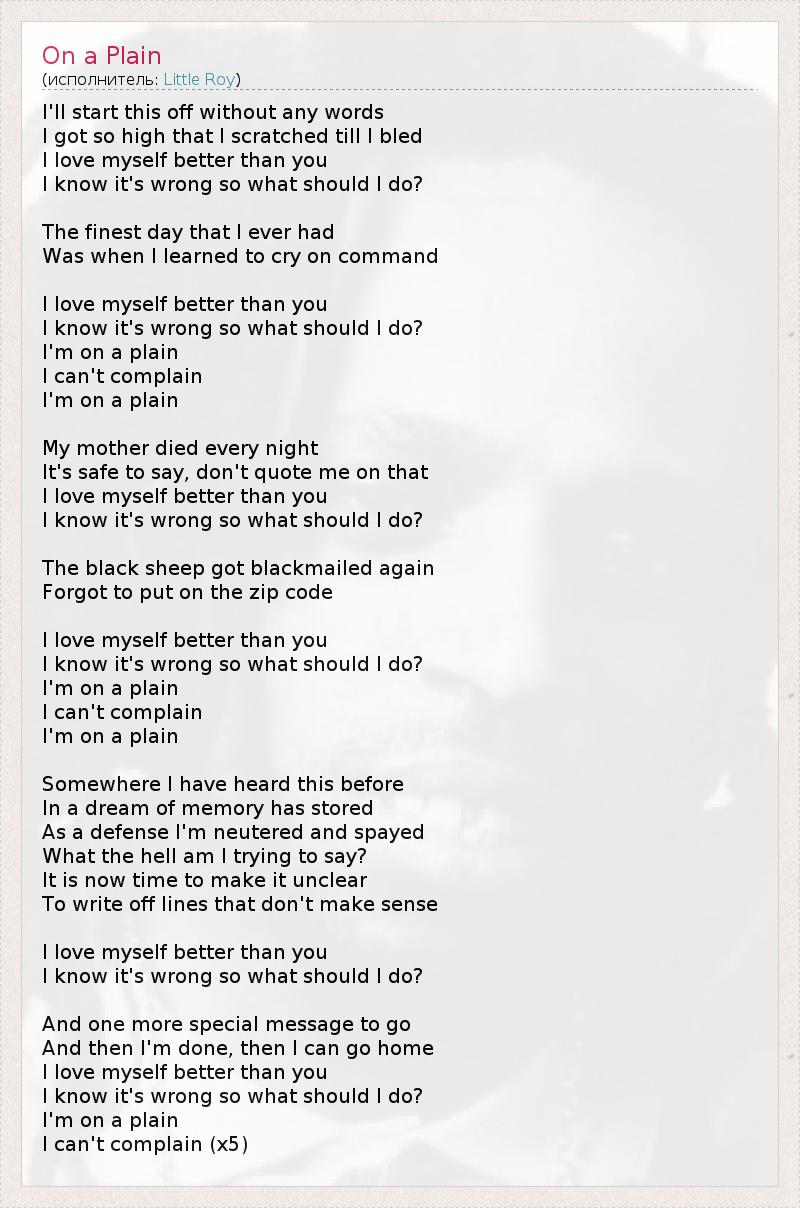 * по ряду версий, песня о пристрастии к наркотикам, и в этом контексте On a plain – в состоянии блаженства (Прим.ред.)