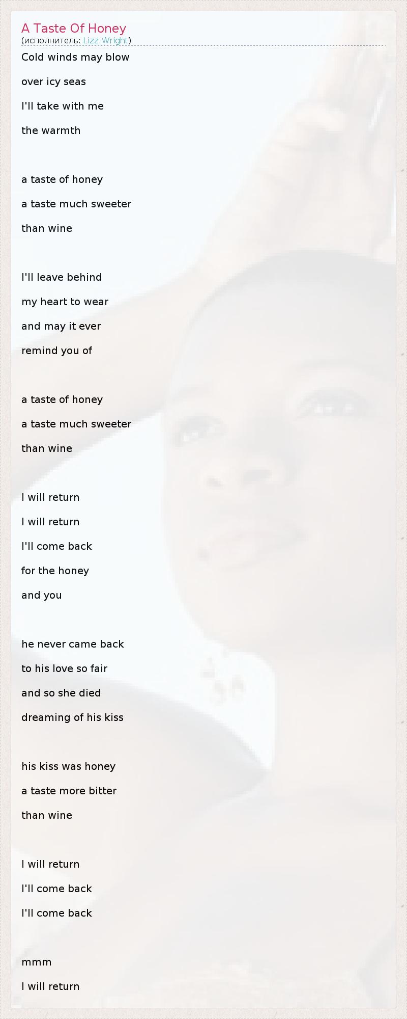 А как ты думаешь, о чем песня "A Taste Of Honey" ?