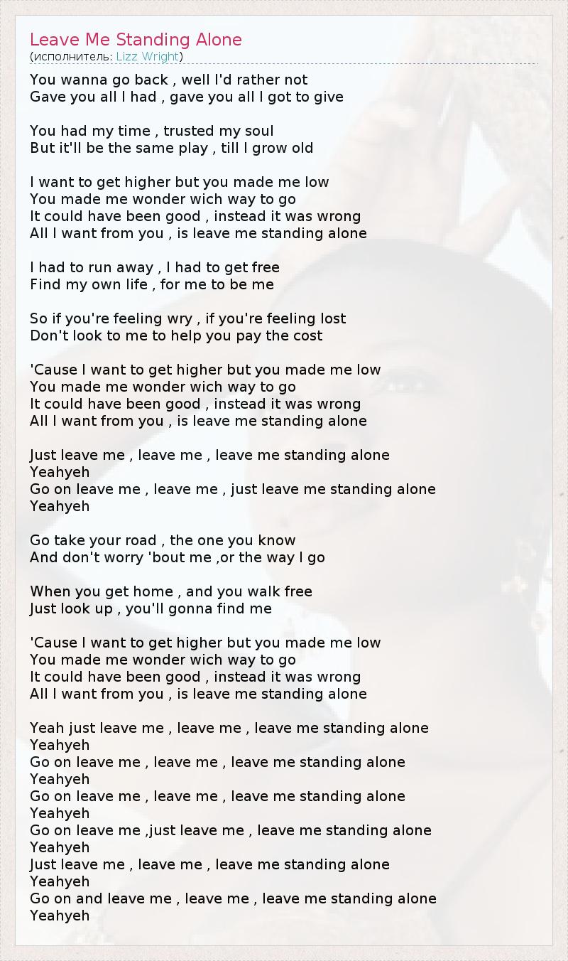 ГлавнаяИсполнителиLizz WrightLeave Me Standing Alone
