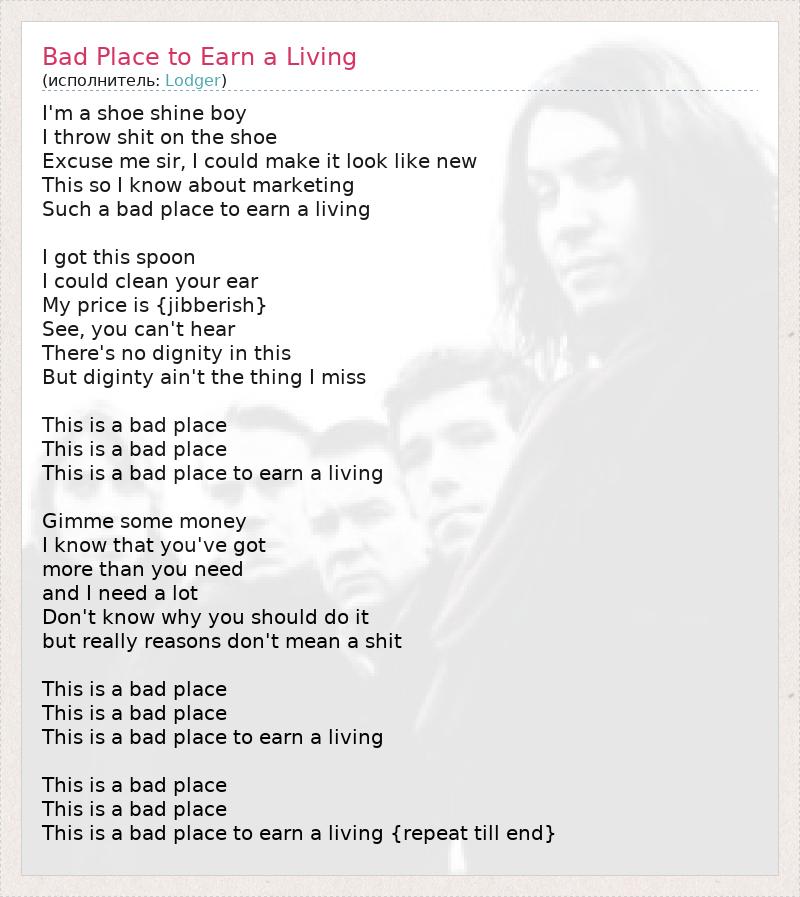 А как ты думаешь, о чем песня "Bad Place to Earn a Living" ?