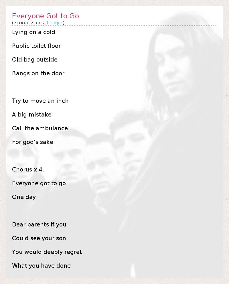 А как ты думаешь, о чем песня "Everyone Got to Go" ?