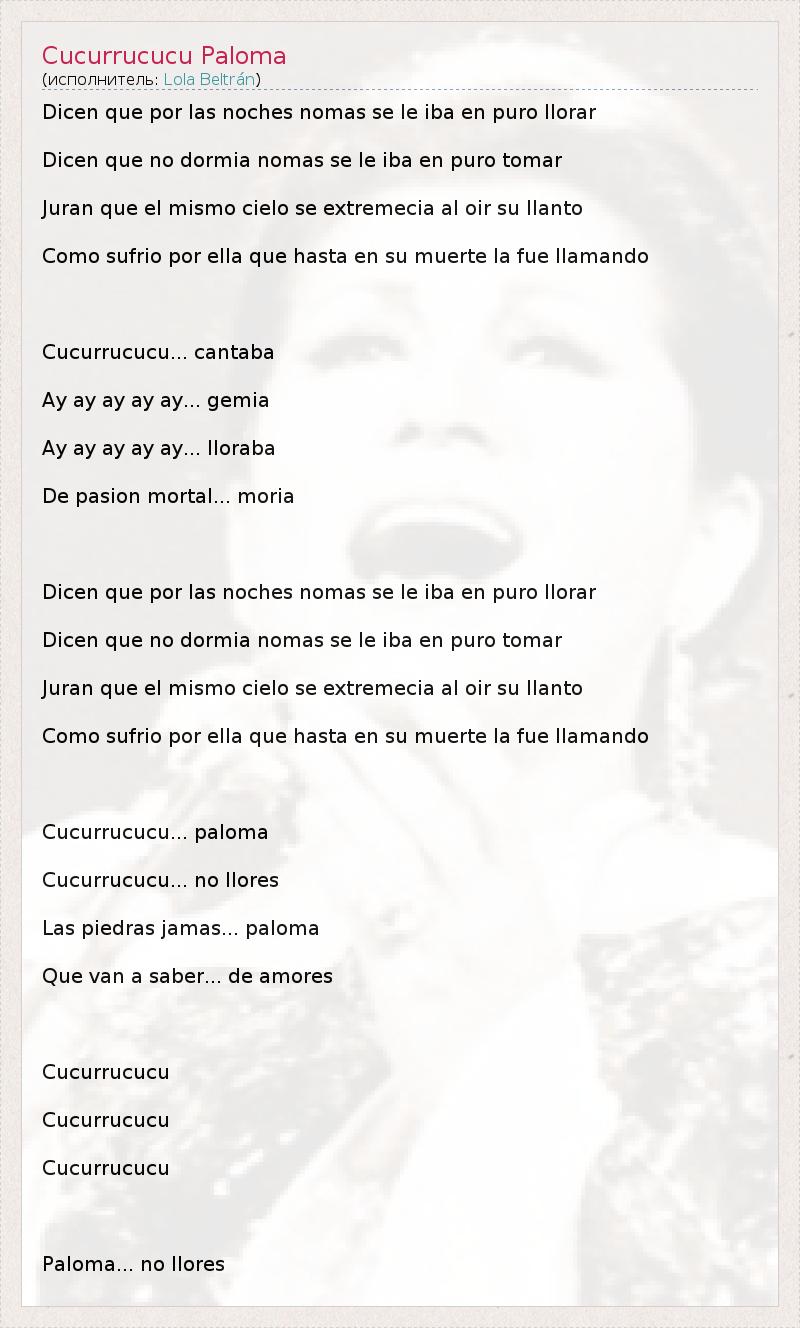 А как ты думаешь, о чем песня "Cucurrucucu Paloma" ?