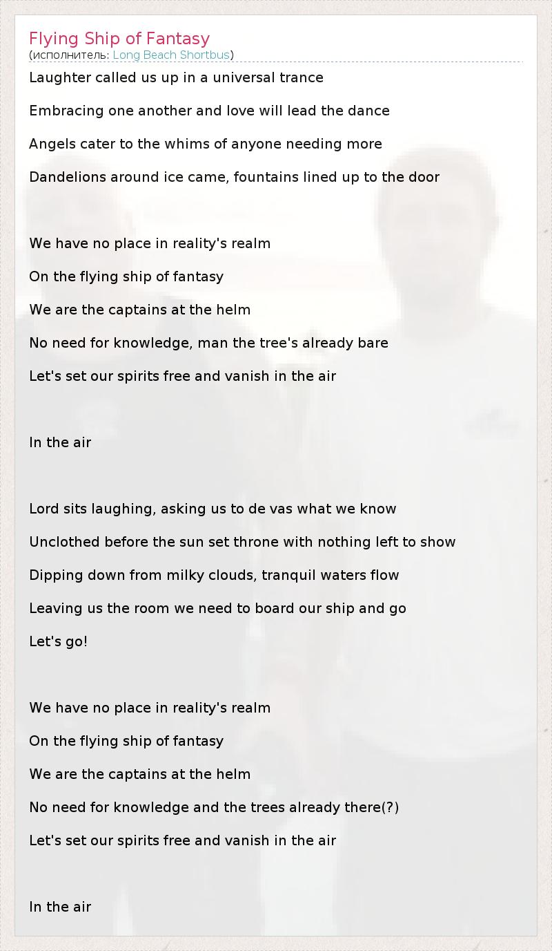 А как ты думаешь, о чем песня "Flying Ship of Fantasy" ?