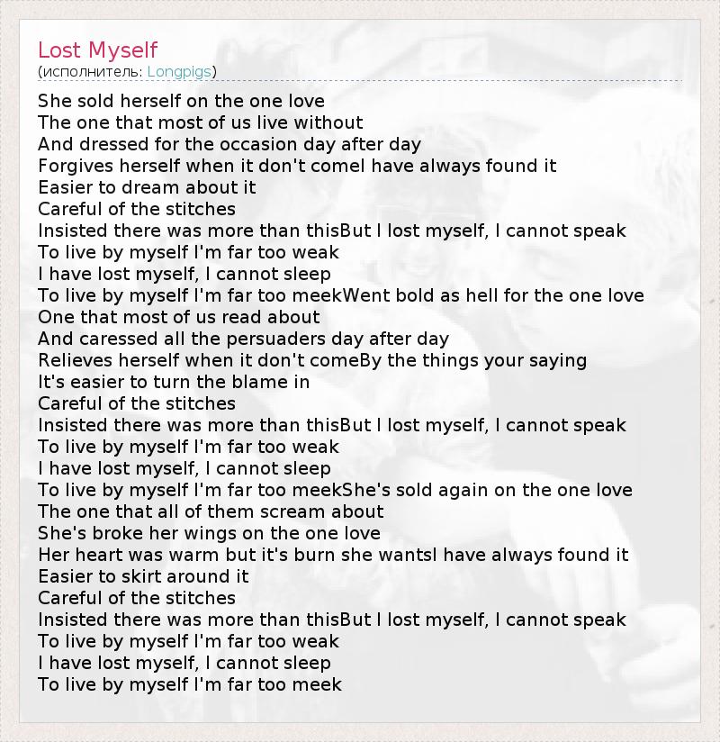 А как ты думаешь, о чем песня "Lost Myself" ?