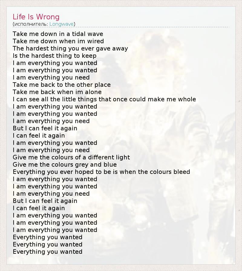 А как ты думаешь, о чем песня "Life Is Wrong" ?