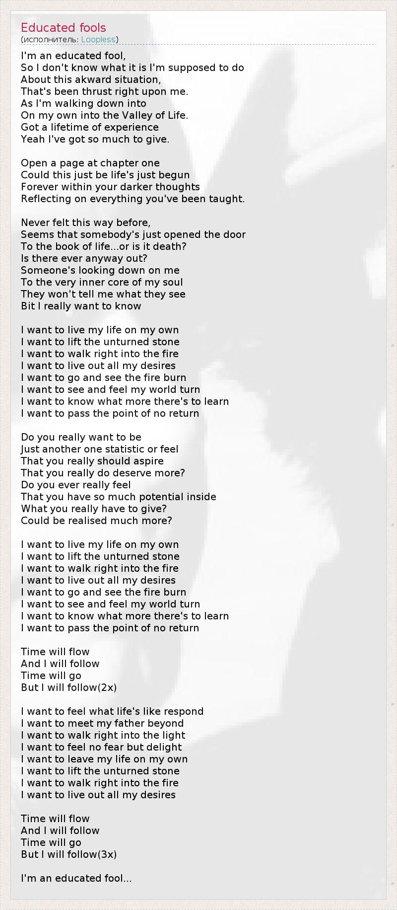 А как ты думаешь, о чем песня "Educated fools" ?