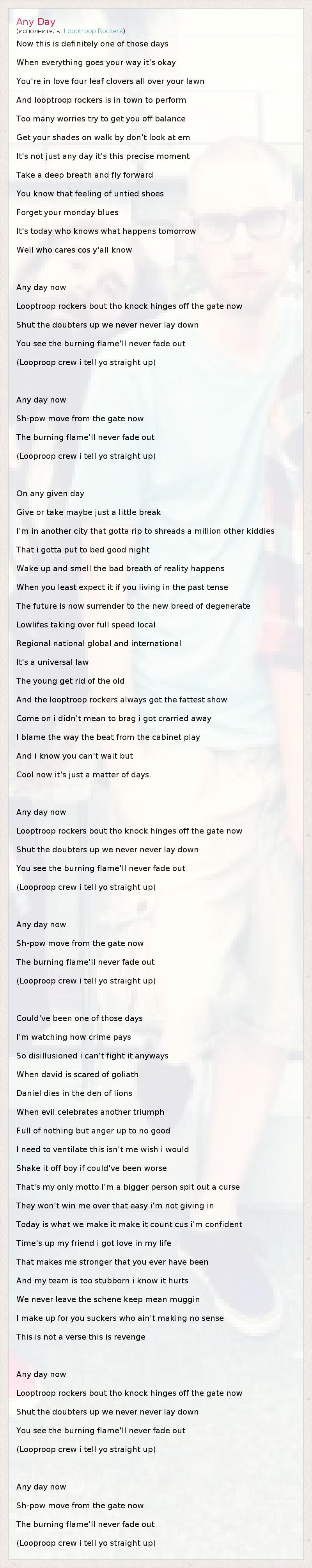 А как ты думаешь, о чем песня "Any Day" ?