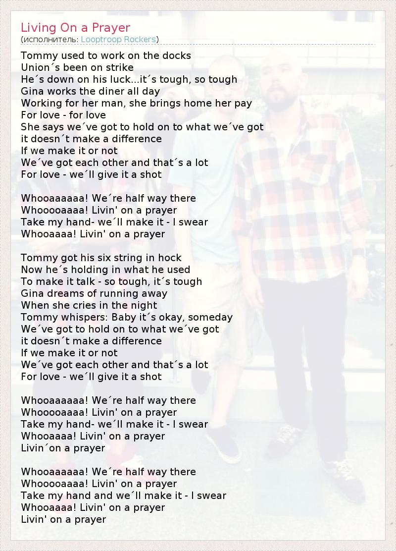 А как ты думаешь, о чем песня "Living On a Prayer" ?