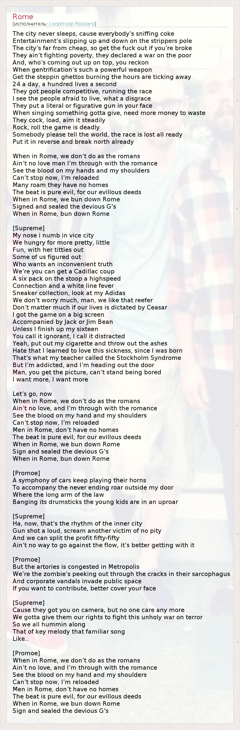 Это интересно:Promoe, Cosmic, Supreme и dj Embee начали свою славную карьеру в далеком 1992 году. Произошло это в небольшом и, конечно же, шведском фабричном городке Вестерос (Vдsterеs), что к западу от Стокгольма. Два одноклассника – dj MC Marshall и Marcie Cee слушали хип-хоп и наслаждались своей уникальностью, ведь в их школе, как им казалось, больше не было никого, кто врубался бы в биты и рифмы. Меньше всех в их школе на рэппера... продолжение