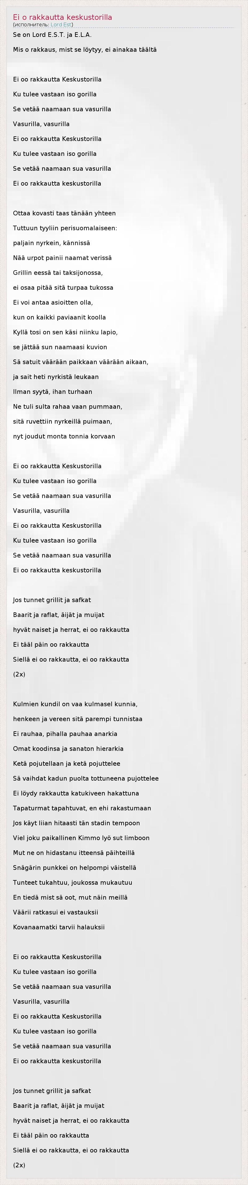 ГлавнаяИсполнителиLord EstEi o rakkautta keskustorilla