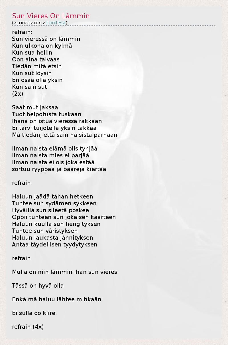 ГлавнаяИсполнителиLord EstSun Vieres On Lämmin
