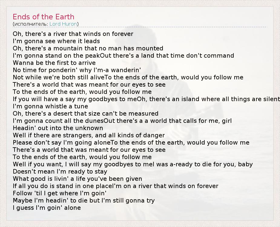 А как ты думаешь, о чем песня "Ends of the Earth" ?