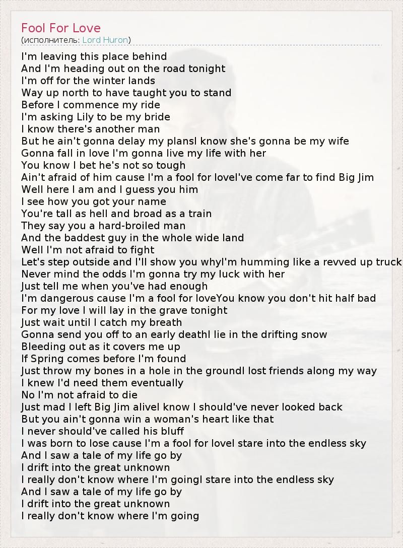 А как ты думаешь, о чем песня "Fool For Love" ?