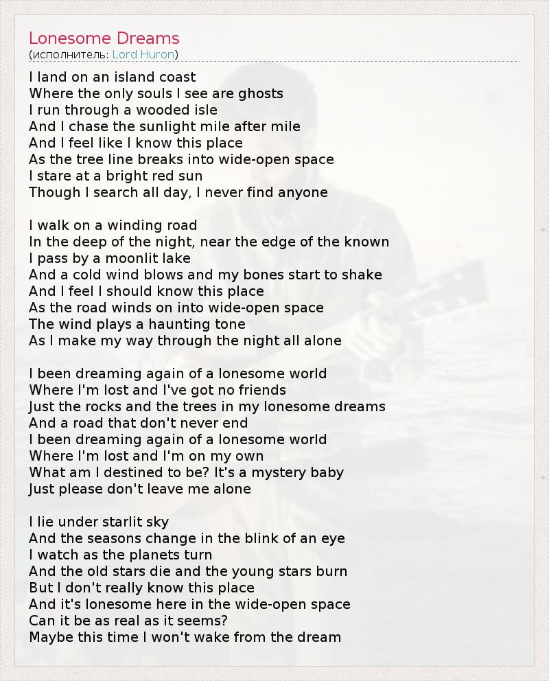 А как ты думаешь, о чем песня "Lonesome Dreams" ?