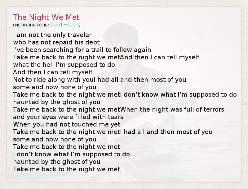 А как ты думаешь, о чем песня "The Night We Met" ?