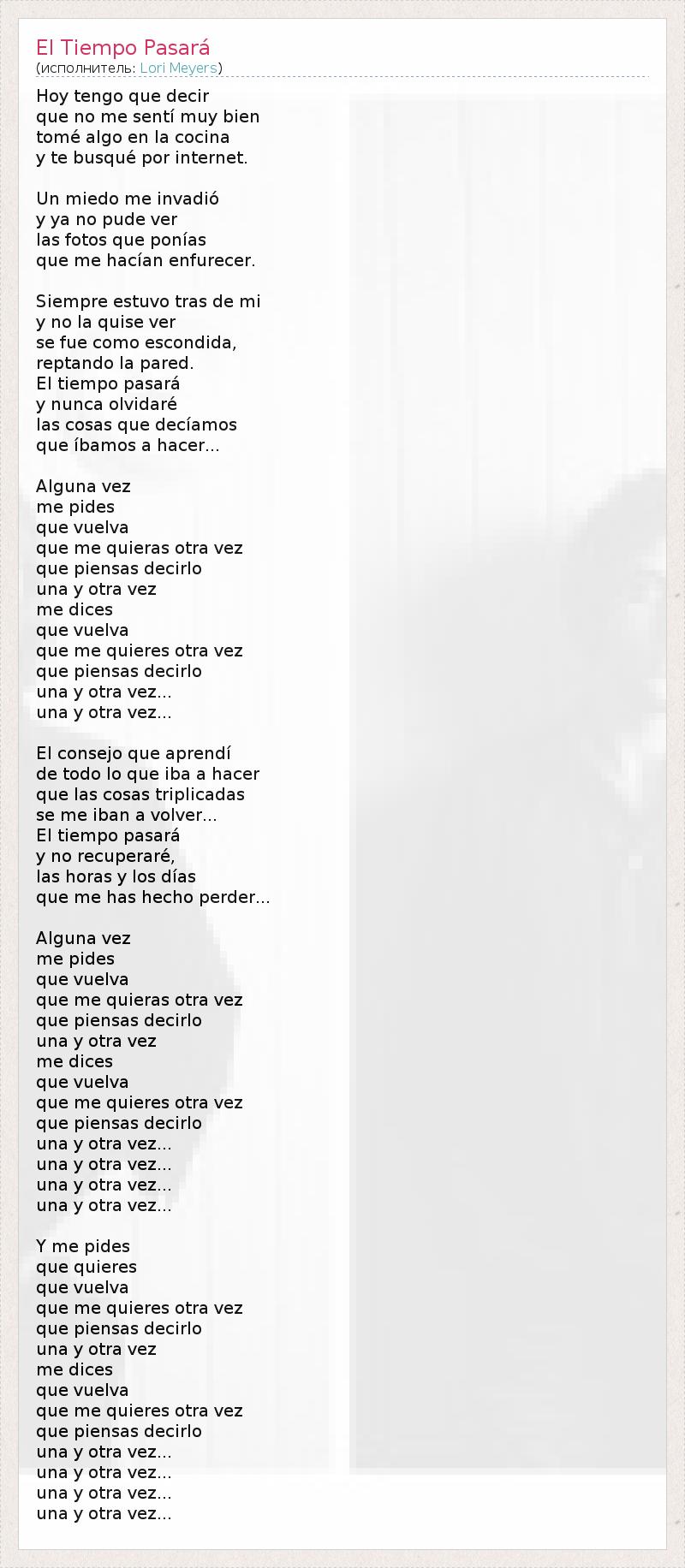 Hoy Tengo Que decir Que No Me SENTI Muy Bien Томе Algo En La Cocina у TE Busque POR интернет . Un Miedo меня invadió у Я. не pude версии лас фотографий Que ponías Que мне hacían enfurecer . Siempre estuvo Tras де ми не у не -ла- quise версии SE ФРУ Комо Escondida , reptando ла сравнению . El Tiempo pasará у Nunca olvidaré лас Cosas Que decíamos Que íbamosHacer ... Alguna Чавес мне pides Que Vuelva Que меня quieras Otra Чавес Que piensas decirlo Una у Otra Чавес мне кубики Que Vuelva Que мне Quieres Otra Чавес Que piensas decirlo Una у Otra Чавес ... Una у Otra Чавес ... El Consejo Que aprendí де TODO вот Que IBAHacer Que Лас- Cosas triplicadas SE мне IBANVolver ... El Tiempo pasará у нет recuperaré , лас Хорас у лос- Диас Que меня есть Hecho Perder ... Alguna Чавес мне pides Que Vuelva Que меня quieras Otra Чавес Que piensas decirlo Una у Otra Чавес мне кубики Que Vuelva Que мне Quieres Otra Чавес Que piensas decirlo Una у Otra Чавес ... Una у Otra Чавес ... Una у Otra Чавес ... Una у Otra Чавес ... У меня pides Que Quieres Que Vuelva Que мне Quieres Otra Чавес Que piensas decirlo Una у Otra Чавес мне кубики Que Vuelva Que мне Quieres Otra Чавес Que piensas decirlo Una у Otra Чавес ... Una у Otra Чавес ... Una у Otra Чавес ... Una у Otra Чавес ...