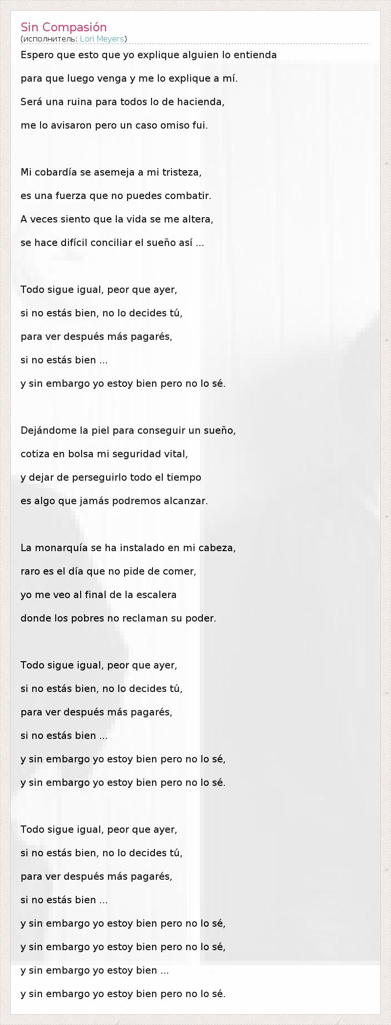 А как ты думаешь, о чем песня "Sin Compasión" ?