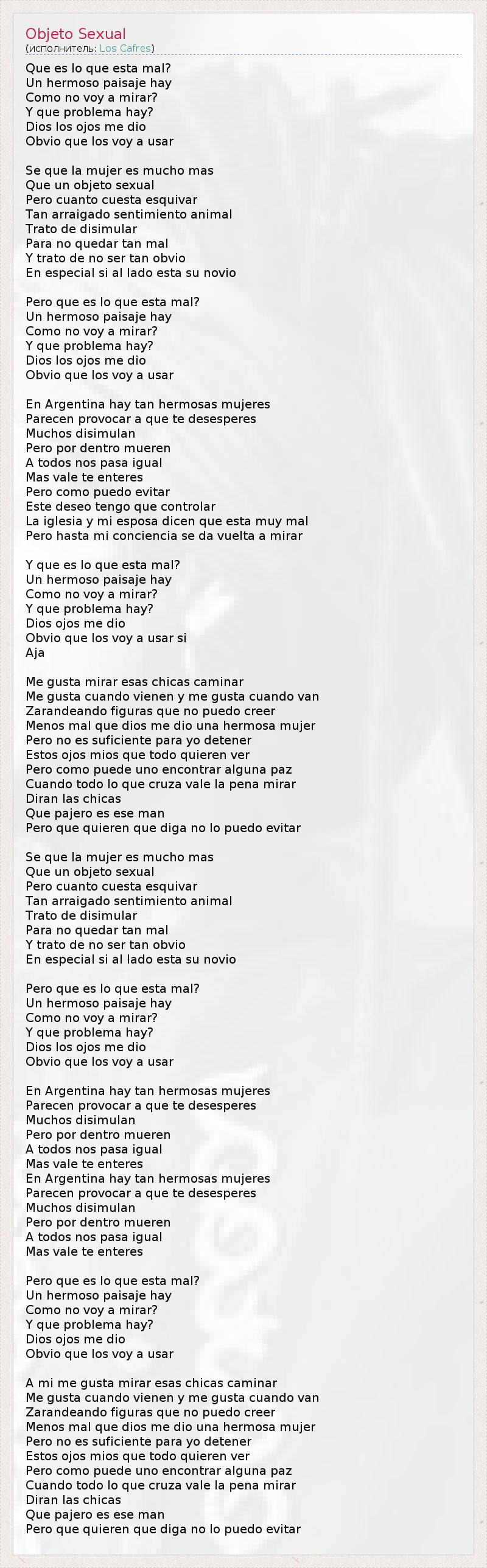 А как ты думаешь, о чем песня "Objeto Sexual" ?