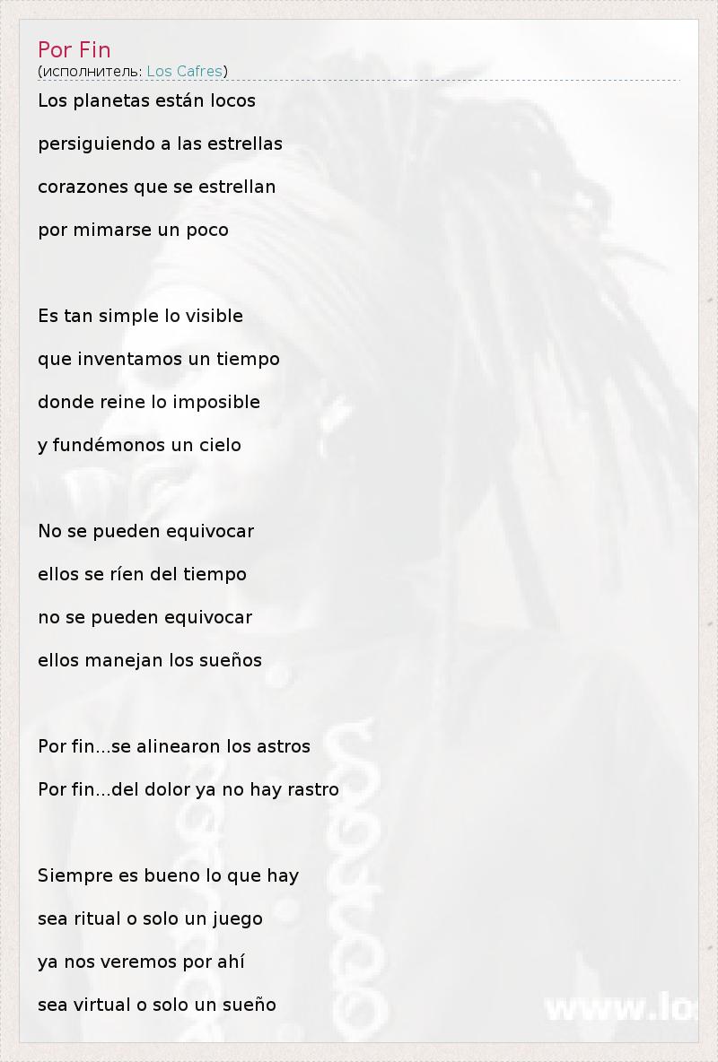 Los planetas están locos persiguiendo a las estrellas corazones que se estrellan por mimarse un poco Es tan simple lo visible que inventamos un tiempo donde reine lo imposible y fundémonos un cielo No se pueden equivocar ellos se ríen del tiempo no se pueden equivocar ellos manejan los sueños Por fin...se alinearon los astros Por fin...del dolor ya no hay rastro Siempre es bueno lo que hay sea ritual o solo un juego ya nos veremos por ahí sea virtual o solo un sueño