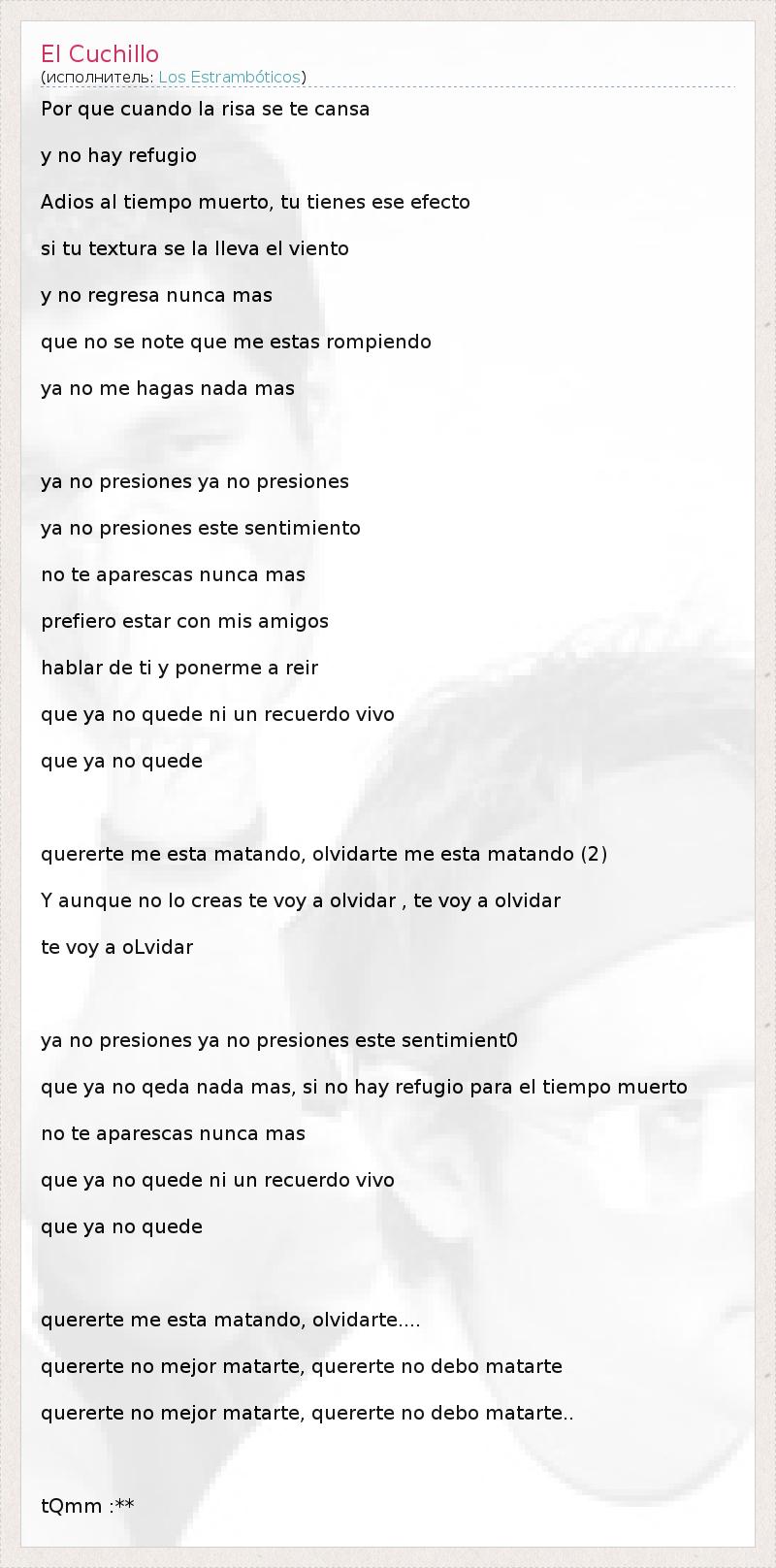 А как ты думаешь, о чем песня "El Cuchillo" ?