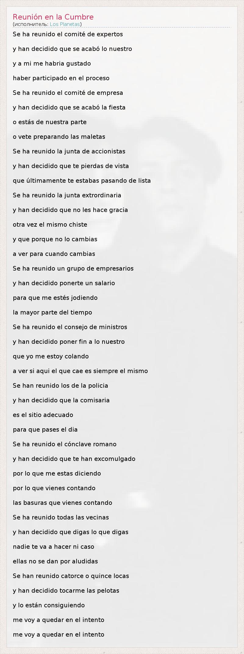 А как ты думаешь, о чем песня "Reunión en la Cumbre" ?