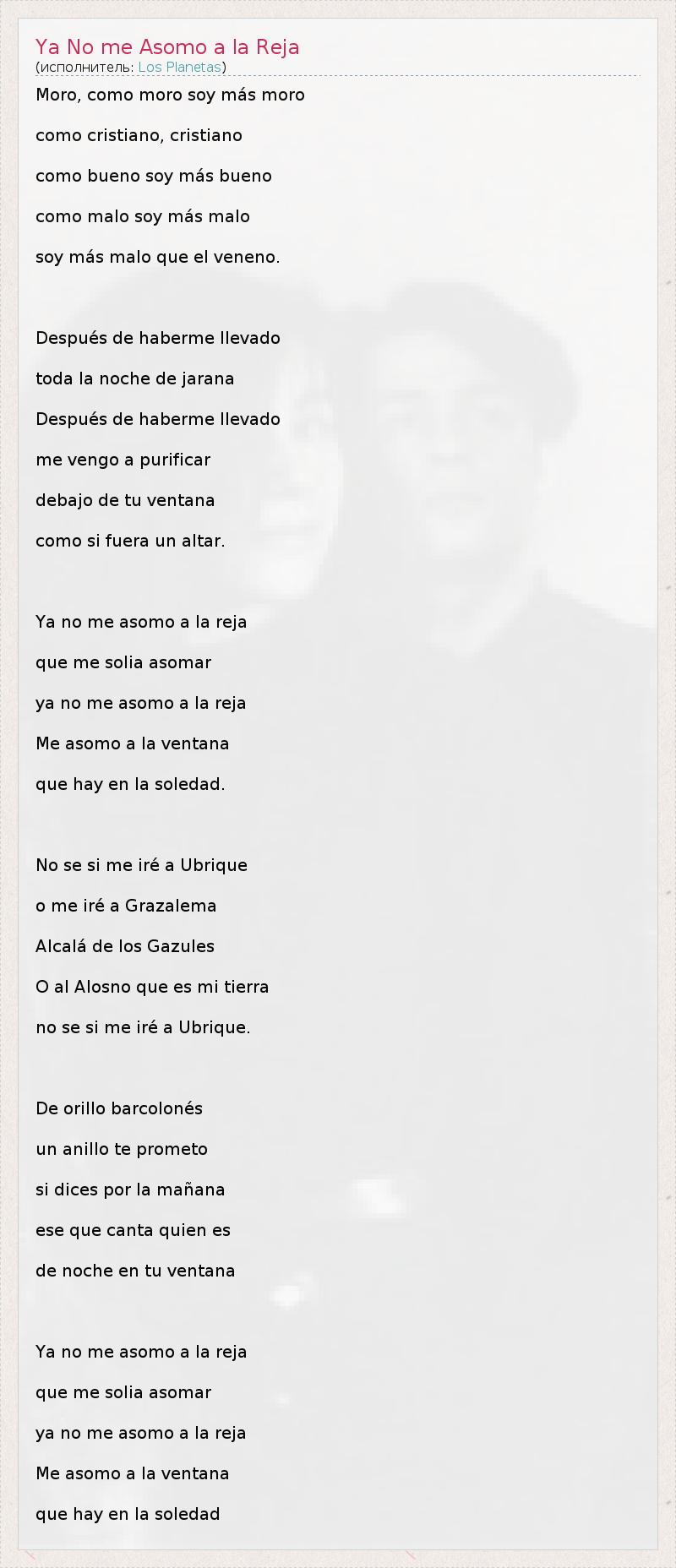 ГлавнаяИсполнителиLos PlanetasYa No me Asomo a la Reja