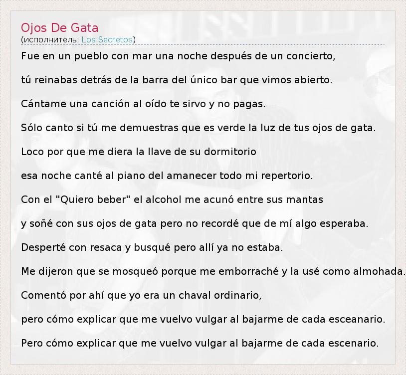А как ты думаешь, о чем песня "Ojos De Gata" ?
