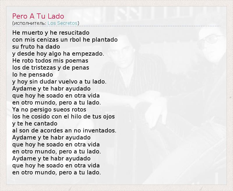 А как ты думаешь, о чем песня "Pero A Tu Lado" ?