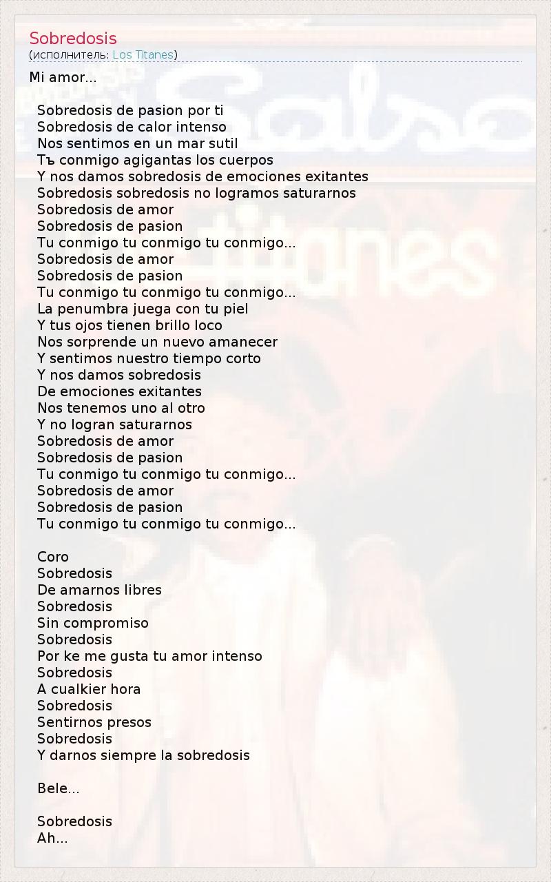 А как ты думаешь, о чем песня "Sobredosis" ?