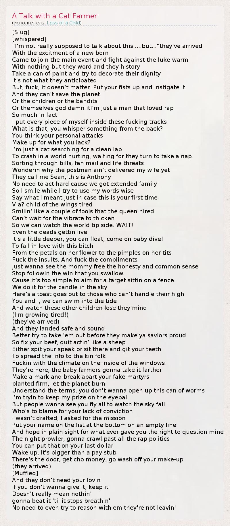 А как ты думаешь, о чем песня "A Talk with a Cat Farmer" ?