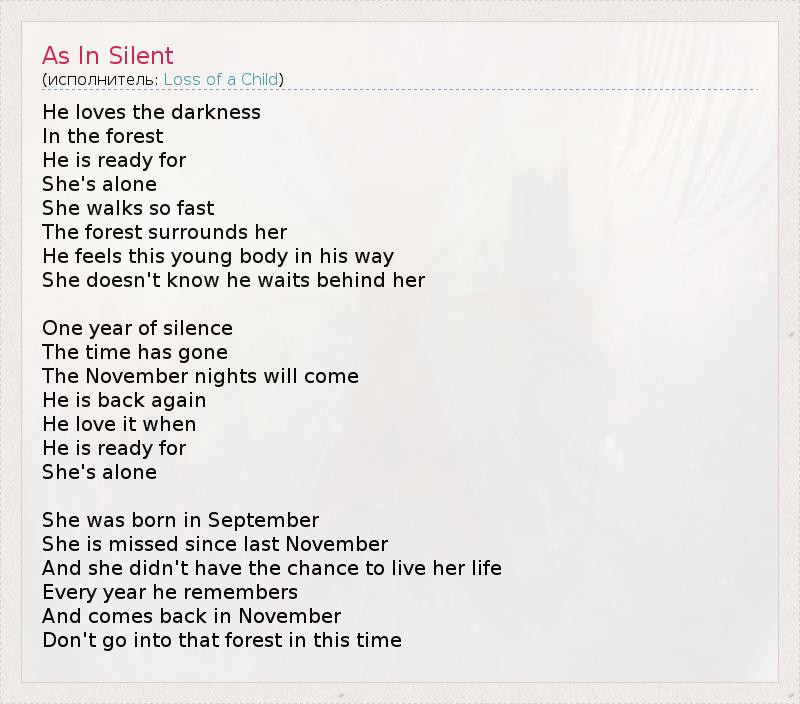 А как ты думаешь, о чем песня "As In Silent" ?