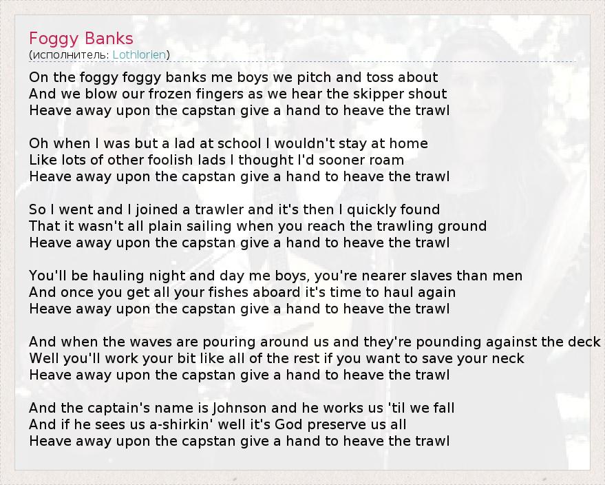 А как ты думаешь, о чем песня "Foggy Banks" ?