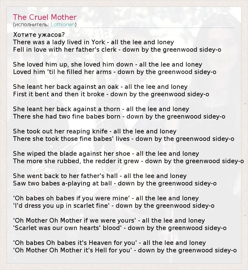 А как ты думаешь, о чем песня "The Cruel Mother" ?