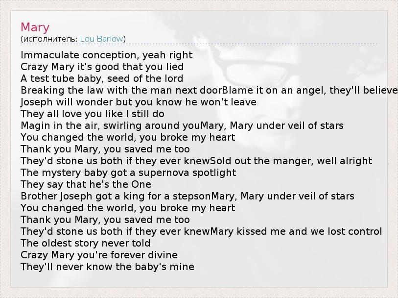 А как ты думаешь, о чем песня "Mary" ?