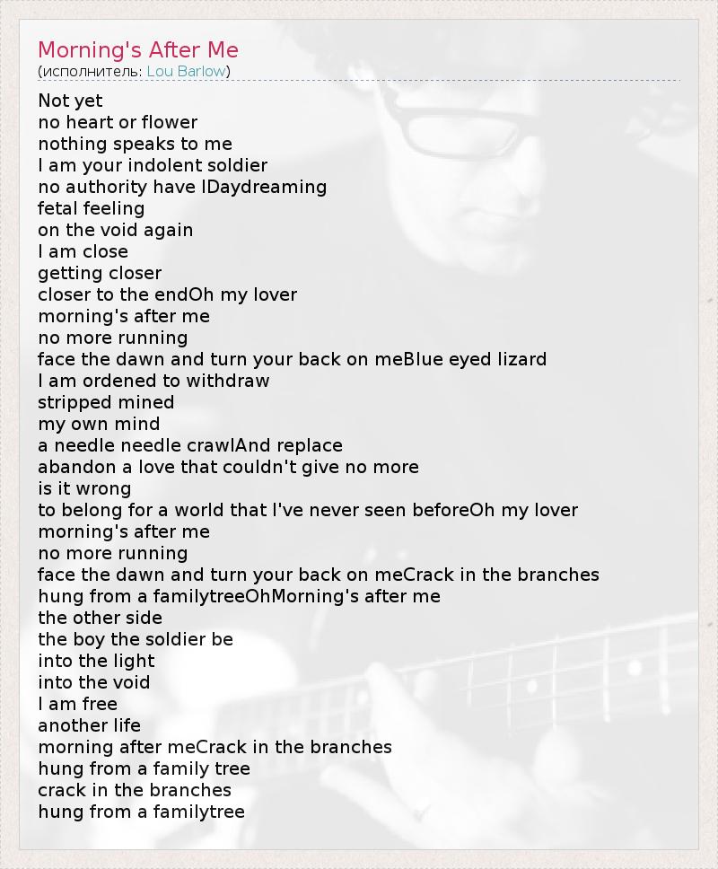 А как ты думаешь, о чем песня "Morning's After Me" ?
