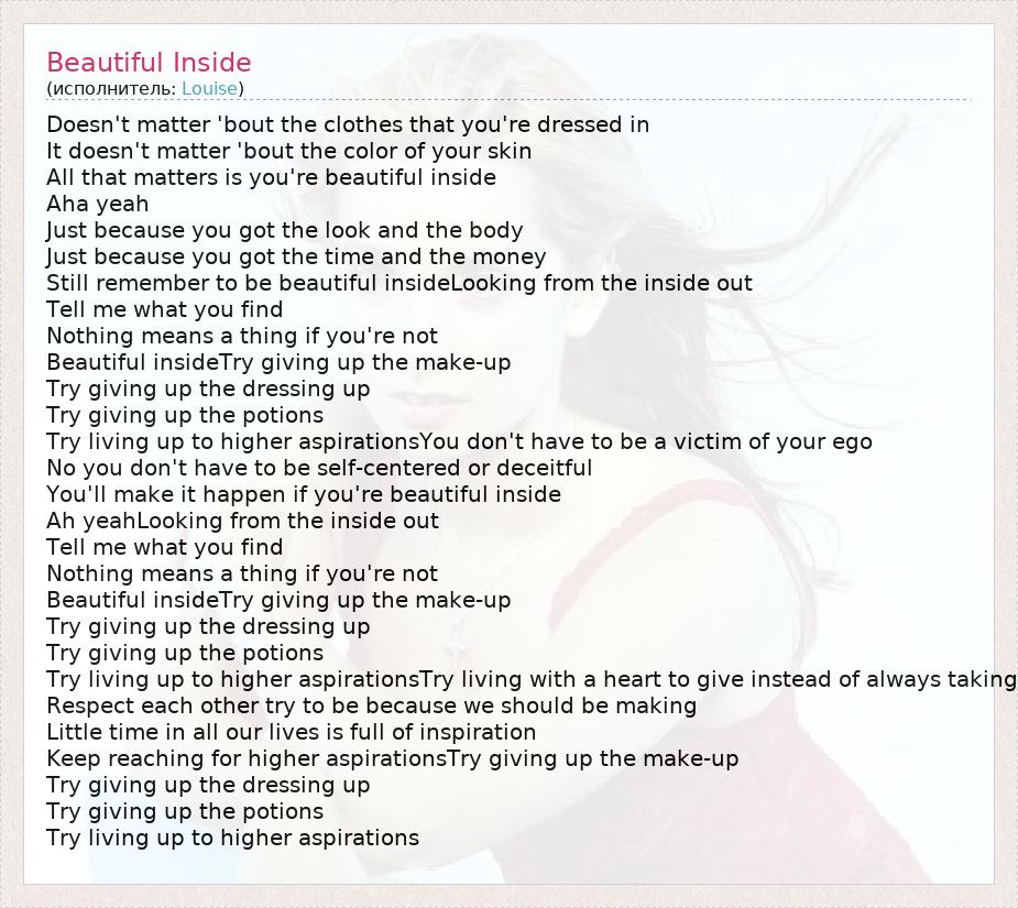 А как ты думаешь, о чем песня "Beautiful Inside" ?