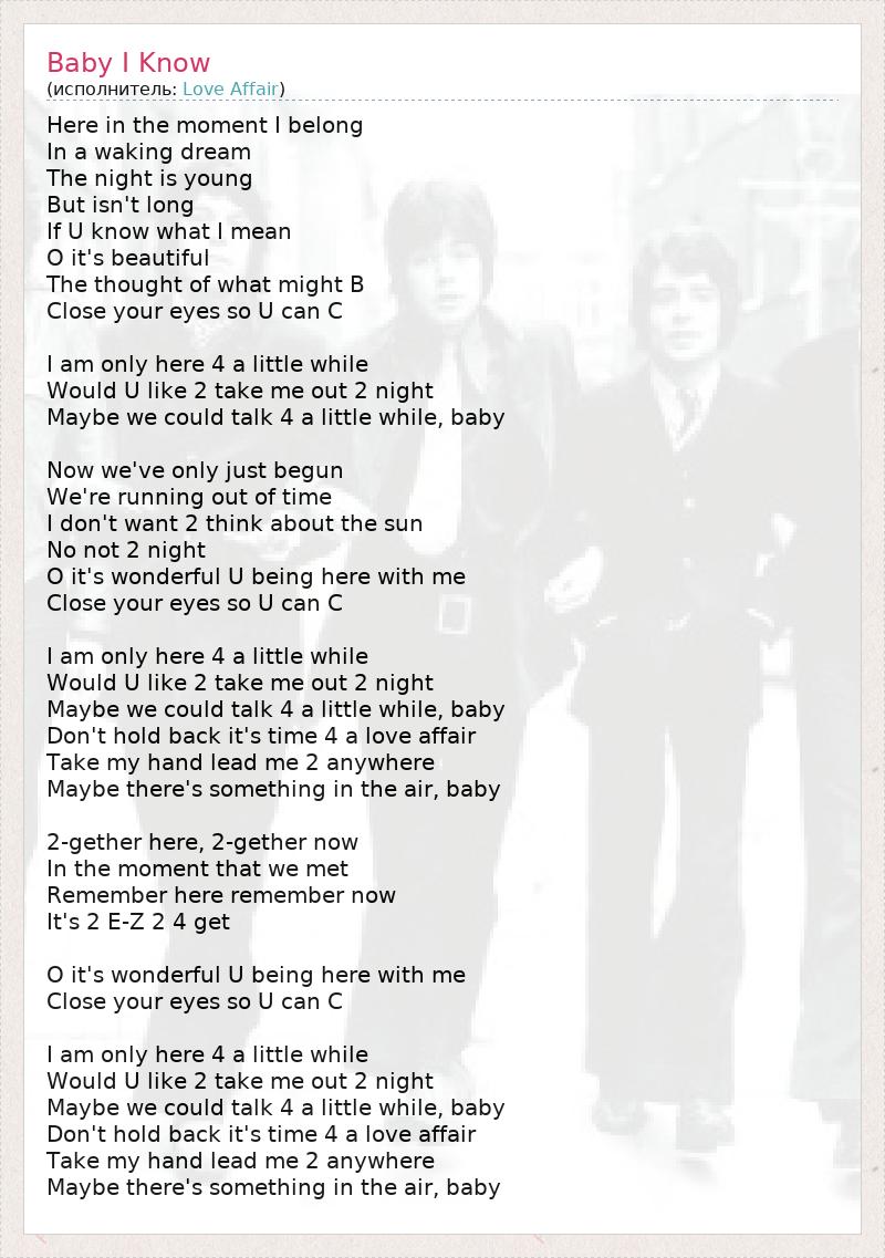 А как ты думаешь, о чем песня "Baby I Know" ?