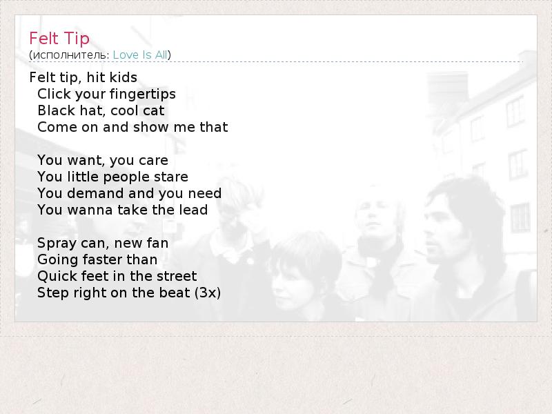 А как ты думаешь, о чем песня "Felt Tip" ?