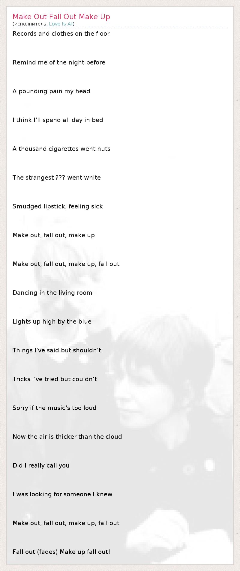 ГлавнаяИсполнителиLove Is AllMake Out Fall Out Make Up