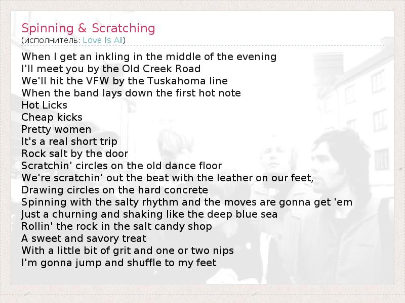 А как ты думаешь, о чем песня "Spinning & Scratching" ?