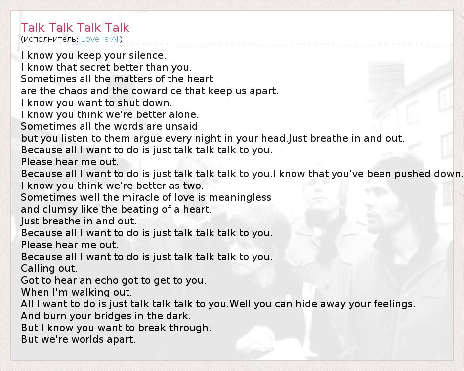 А как ты думаешь, о чем песня "Talk Talk Talk Talk" ?