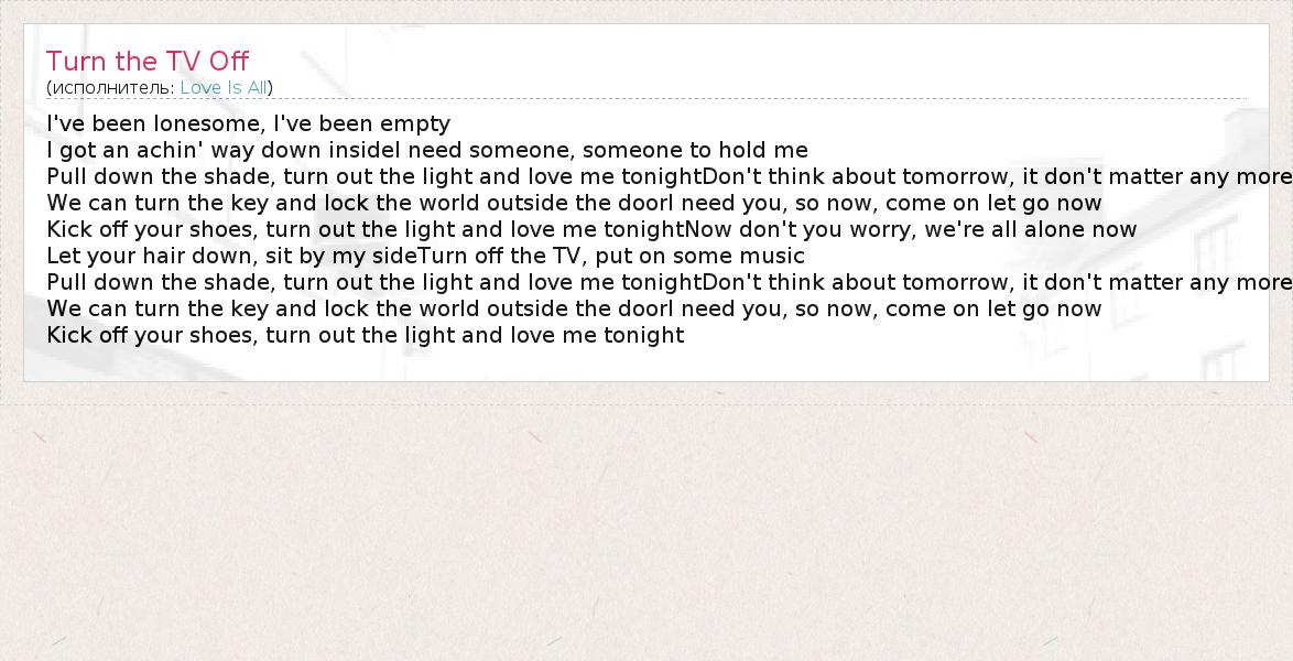 А как ты думаешь, о чем песня "Turn the TV Off" ?