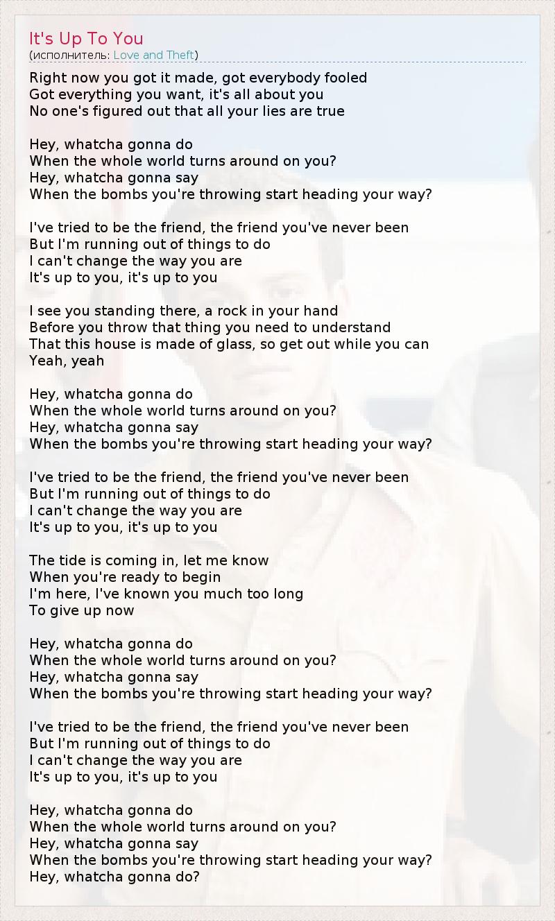 А как ты думаешь, о чем песня "It's Up To You" ?