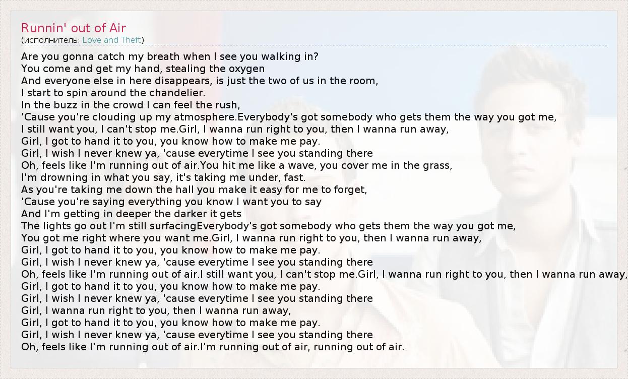 А как ты думаешь, о чем песня "Runnin' out of Air" ?